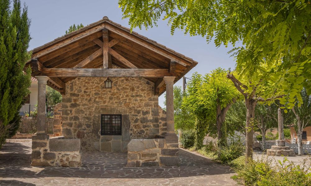 La fuente del pueblo cuenta con tres cañones decorados con cabezas de leones bajo un arco, y se encuentra en la parte baja del pueblo. Junto a la fuente se puede observar un abrevadero para los animales de campo y un lavadero cubierto.